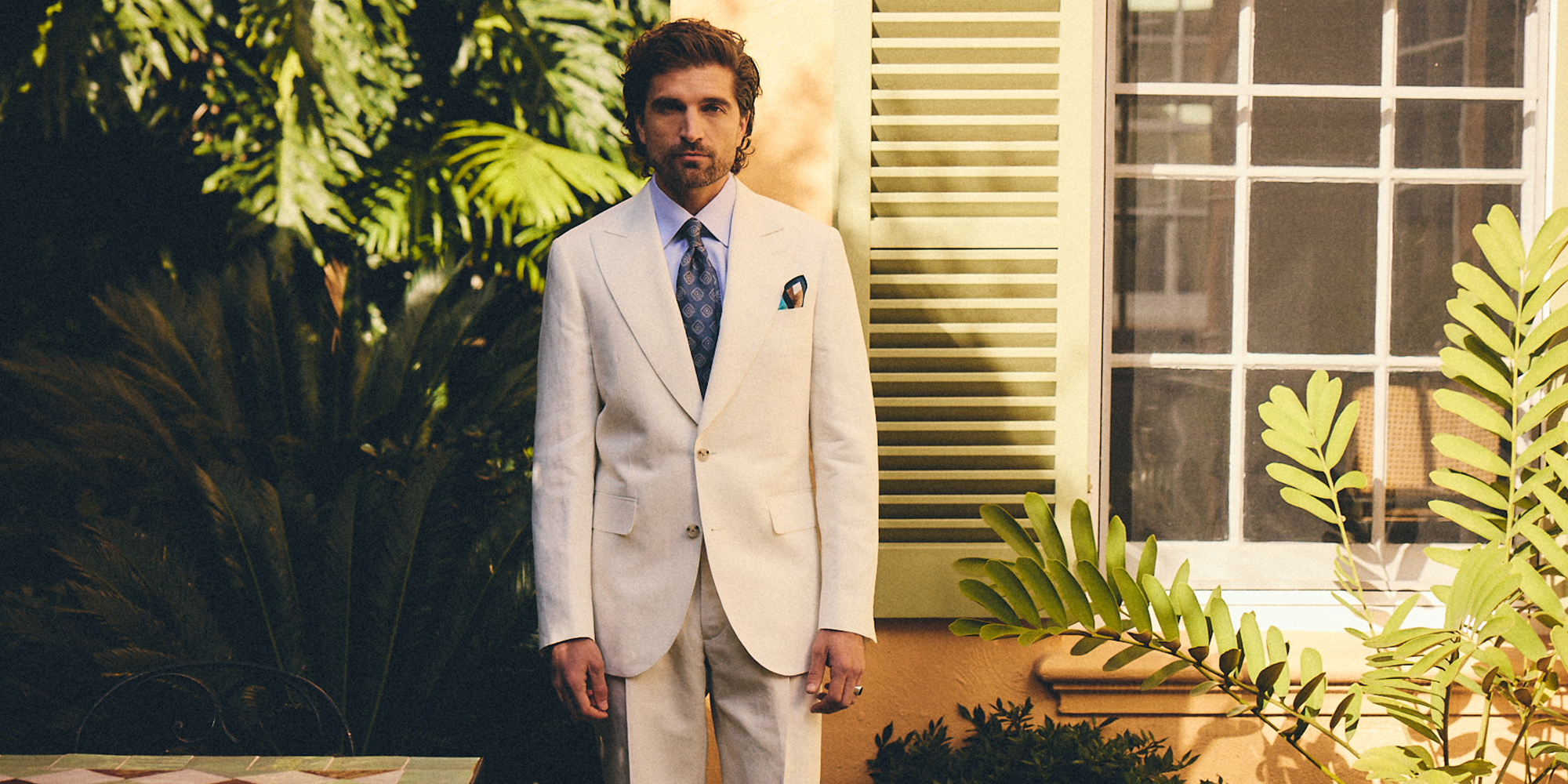 Kennedy suit - Mid blue microdesign, in pure wool super 110's