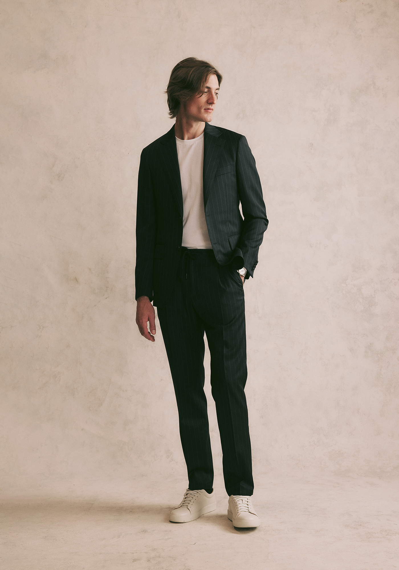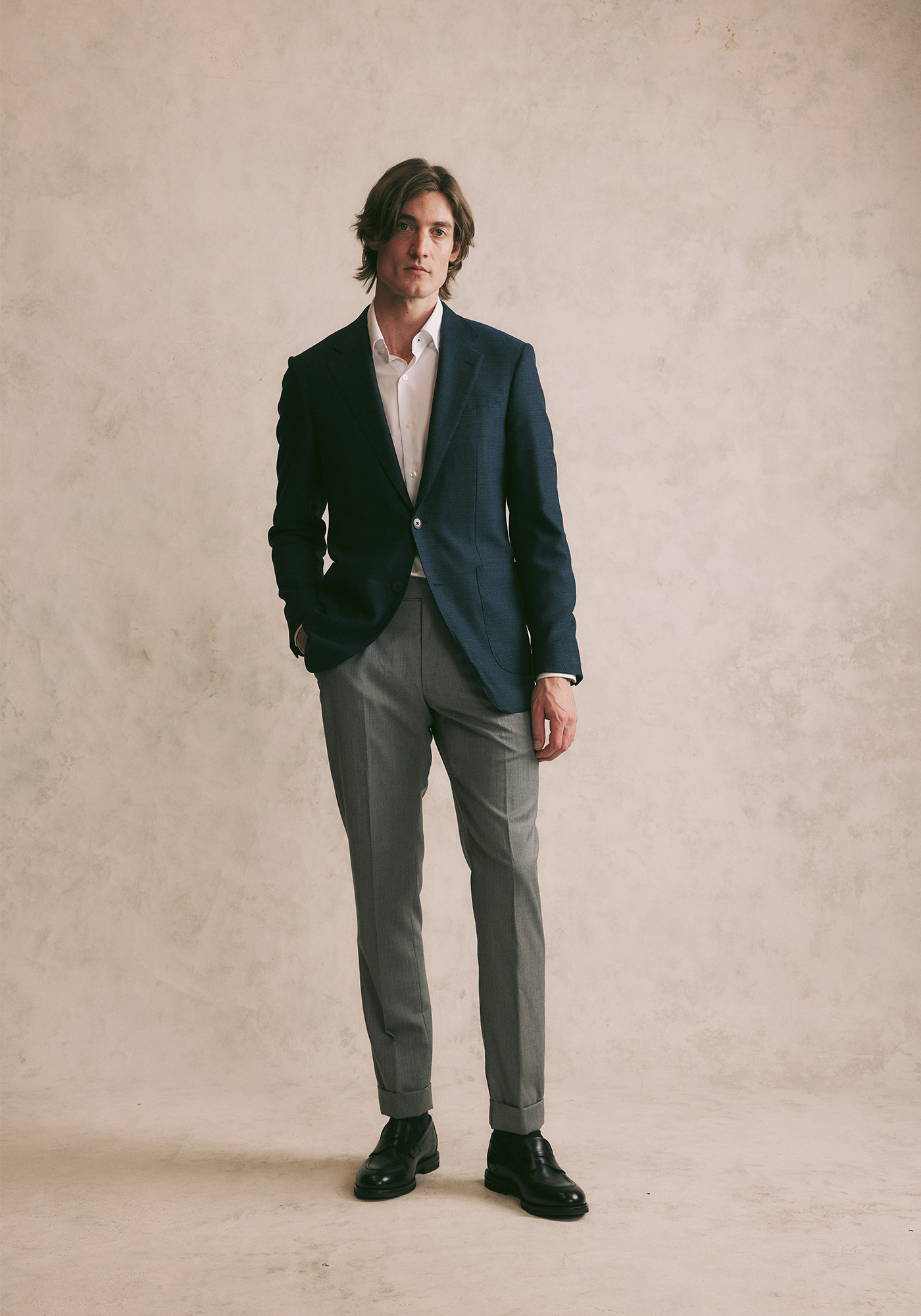 A smart casual setting allows you to substitute a shirt for a popover, knitwear or even a t-shirt worn under a blazer. Play around with tailored garments in more relaxed styles and fabrics such as linens and cottons. Footwear can go as casual as loafers, boat shoes or driving shoes, but not as far as sneakers.