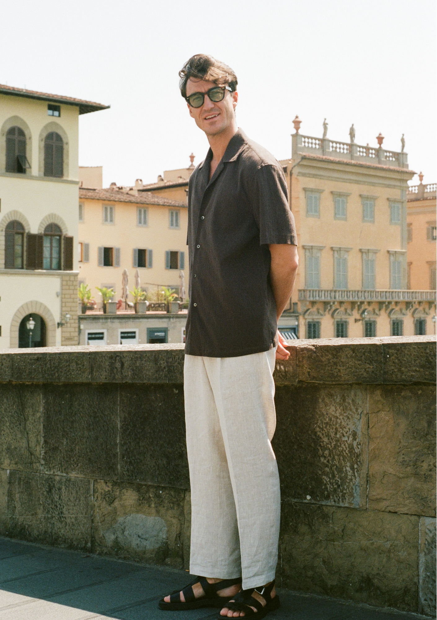 In every design, Florence is both our muse and our measure. A city where a jacket finds its rhythm strolling over cobblestones, where a shirt settles easily into a café chair, and where tailoring feels at home between galleries and late-night trattorias. Each piece does more than dress the man; it becomes part of the life he lives.
